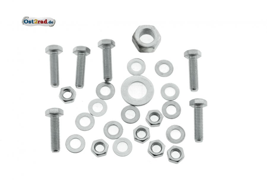 Set de vis dans la catégorie 2.6. partie cycle - roue avant pour frein à disque spécialement pour ETZ250 et 2.7. partie cycle- roue avant pour frein à disque spécialement pour ETZ251 composé de 6x vis, 13x rondelles et 7x écrous, galvanisés.